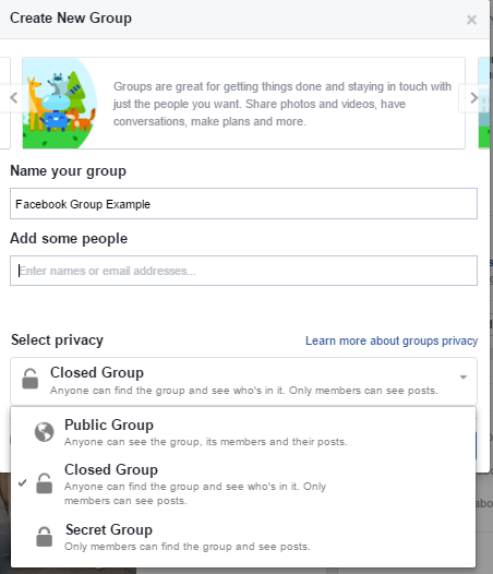 Then it’s time to create your group. Rather than go into the step-by-step process of creating a group (which is straight forward), we’re going to take a look at a few tips.