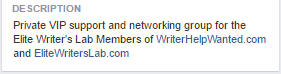 For example, here’s a description for the closed group, Elite Writer’s Lab