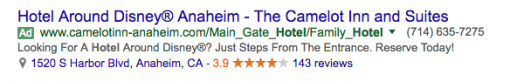 An automatic extension that will appear if you fill out the information and someone has made a rating or written a review about your business. This became a mainstay on Google search ads shortly after Google bought Zagat Restaurant Guides, and is now used across many different types of business ad results.