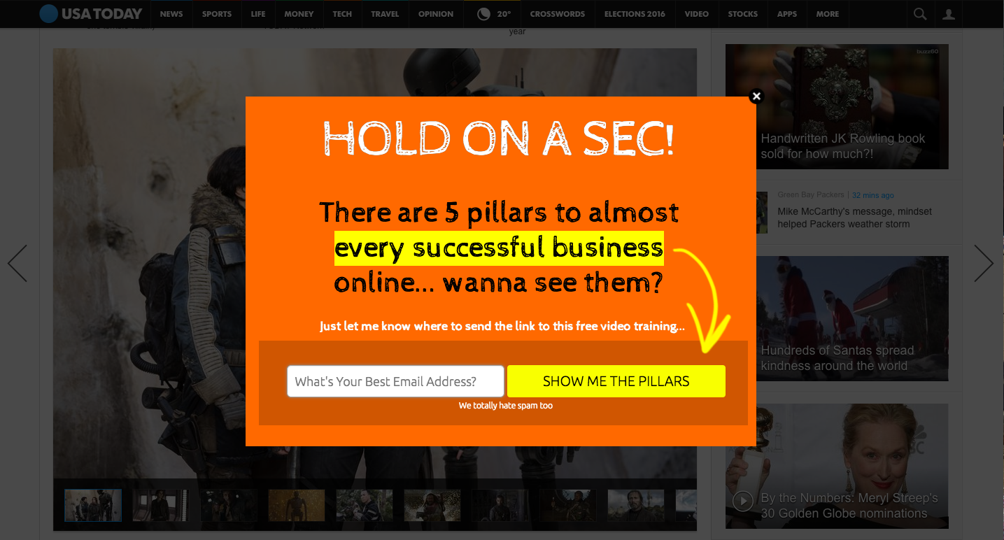 In this example, I've superimposed an “exit-intent” pop-up over a page on USA Today.