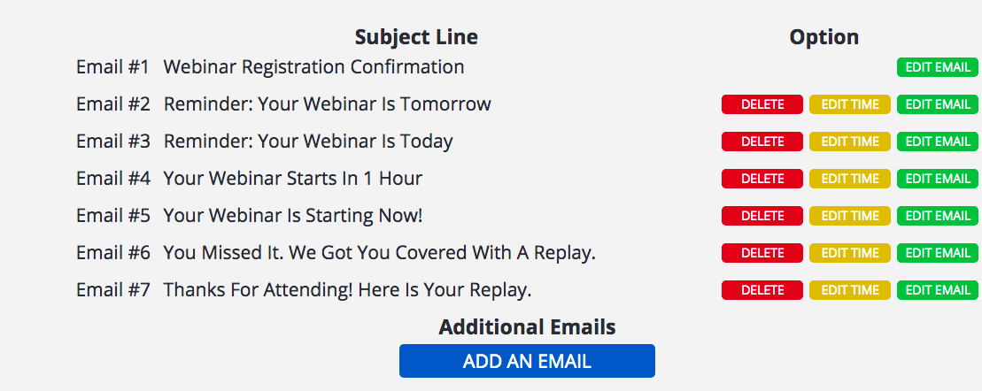 Once you’ve gone through and set up your event you’ll want to set up your email reminders. Some platforms have pre-written sequences. I recommend setting your reminders to go out both 1 day and 1 hour before start time for the best attendance. You can also set up your post event emails to be sent within 24 hours after the event.