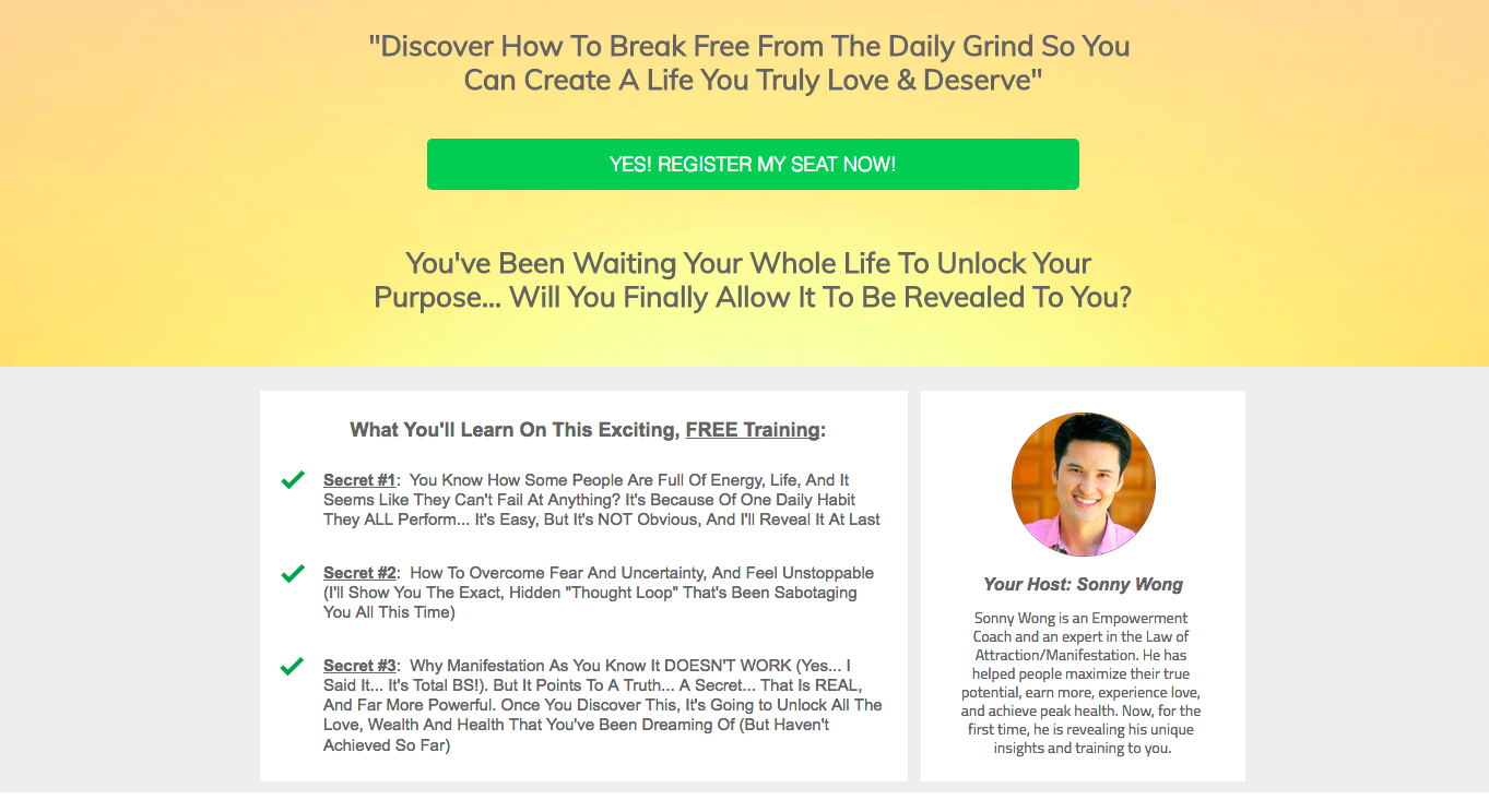 “10 Simple Steps to Your First Six Figure Year,” is more specific. It tells your prospects exactly what they’re going to get from the webinar and what they have to gain. Also, by positioning it as “you first six figure year,” it tells people who may already be making 6 figures that this webinar may not be for them.
