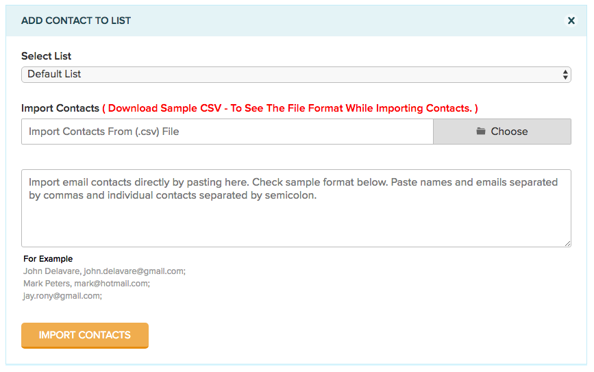 There are a couple of different ways to add contacts to your MailGet account. Your first option is to upload existing contacts to your account (in compliance with MailGet's permission-base standards, of course). You can do this by either pasting your contacts into their form or uploading a CSV file.