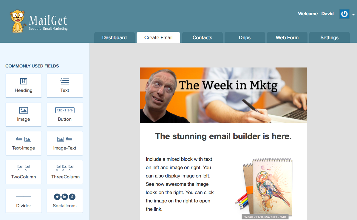 If you're looking for great looking emails and the ease of use to get them composed and distributed to your list, have a look at MailGet. It certainly wins my seal of approval.