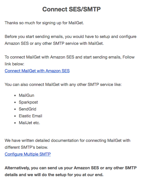 I was a little concerned about having to connect the Amazon SES platform to MailGet, but my worries were quickly alleviated when I was instantly greeted by an easy-to-follow setup guide.
