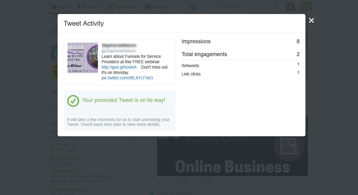 You can get real-time analytics on boosted tweets. That can be fun to watch as your post or tweet gets more attention with re-tweets, and other responses. If you want to be sure your tweets are seen, promoting them for as little as 10 dollars can do the trick.