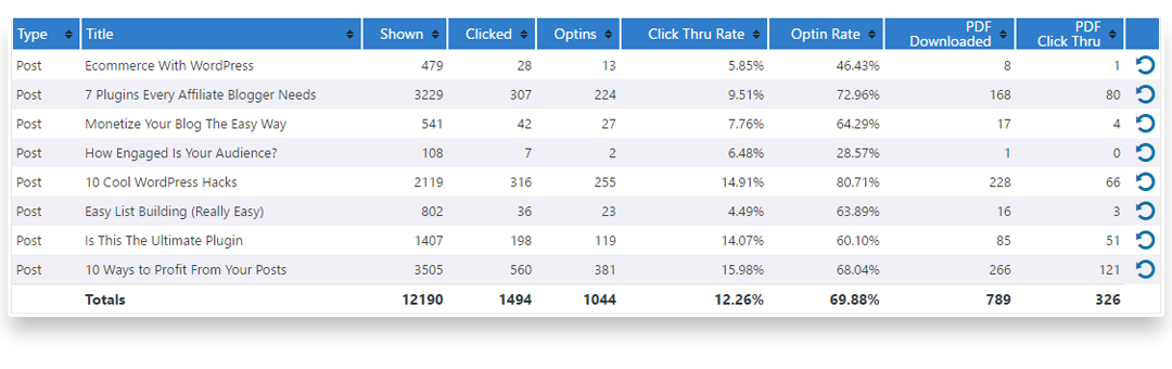 PostGopher has direct integration with email services like AWeber, GetResponse, MailChimp, InfusionSoft, Constant Contact, and more through either API or the ability to connect via HTML form code. And while the customization isn't nearly as great as the other two tools I've covered here, PostGopher does offer one other really nice feature… you can see conversions of popular posts as well as returning visits generated by your lead magnets (and that info can be pretty darn useful if you know how to take advantage of it).
