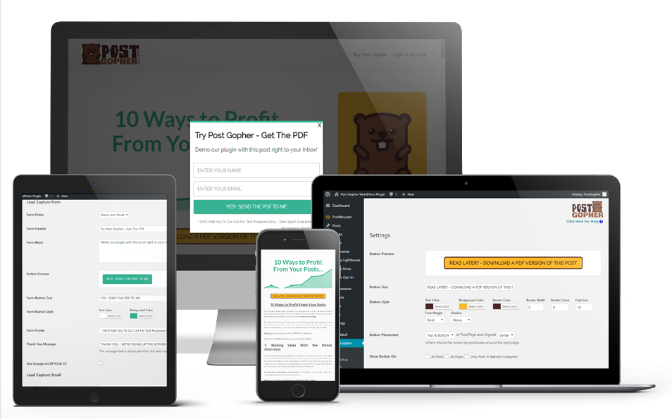 For a more hands-free approach to list building from your blog posts, you might want to consider PostGopher. This smart WordPress plugin gives your readers the ability to click a button on your post and have a PDF version of what they are viewing at the time, sent to them so they can read it later.