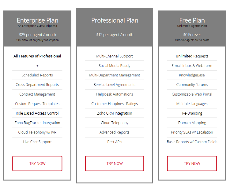 And in the case of Zoho Support, they've put three additional calls-to-action here, in their pricing table.